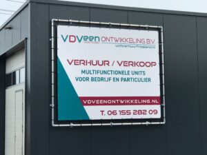Spandoek frame op bedrijfspand of loods